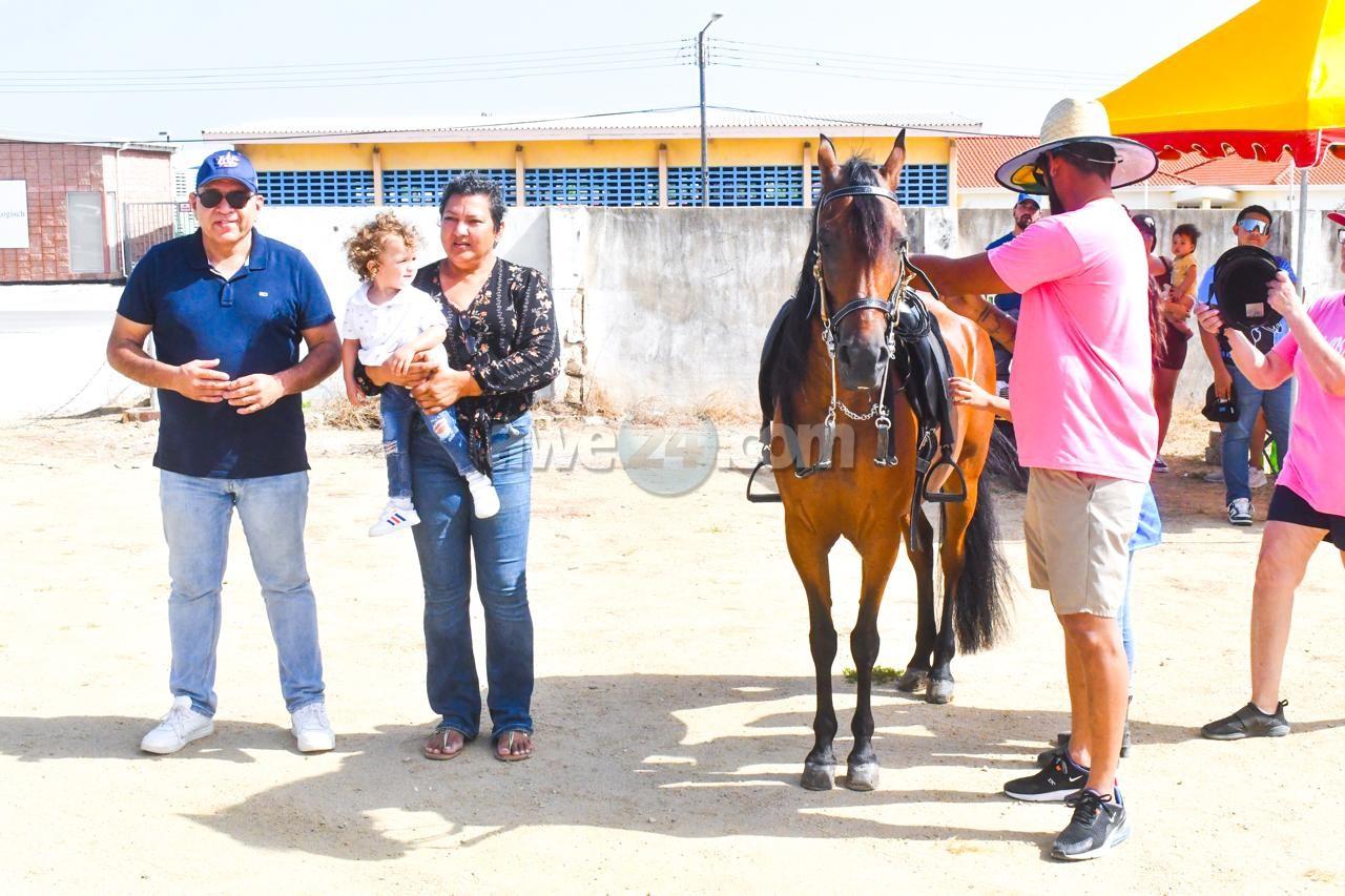 ORANJESTAD: Diasabra ultimo, Minister Endy Croes acompaña pa su kerida esposa Dilailah Croes – Odor y nieto Kay a bishita Centro di Bario Dakota pa desea e 6 atletanan cu ta saliendo pa Puerto Rico pa competi den XIV Mundial di Equitacion hopi exito. Tambe e mandatario di Deporte a presencia e bunita show di e cabayistanan Mia Rose Tromp y Zaria de Groot cu a duna un excelente presentacion demostrando nan talento den cuadro di nan preparacion pa e mudial cu ta tuma luga di 18 pa 21 di juli proximo. E tabata un evento pa recauda fondo pa e cabayistanan cu lo representa Aruba na Puerto Rico. Esnan presente por a gosa di un atardi ameno. Pa conclui, Minister Endy Croes ta gradici Oganisacion Caballista Arubano (OCA), mayor y tur cu ta sostene e hobennan den nan disciplina faborito. Alabes, e mandatario di Deporte ta desea e atletanan hopi exito na Humacao, Puerto Rico. Cu deseo, dedicacion, determinacion y disciplina ta logra!