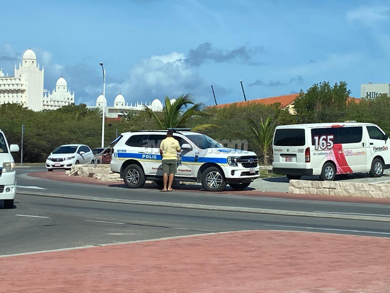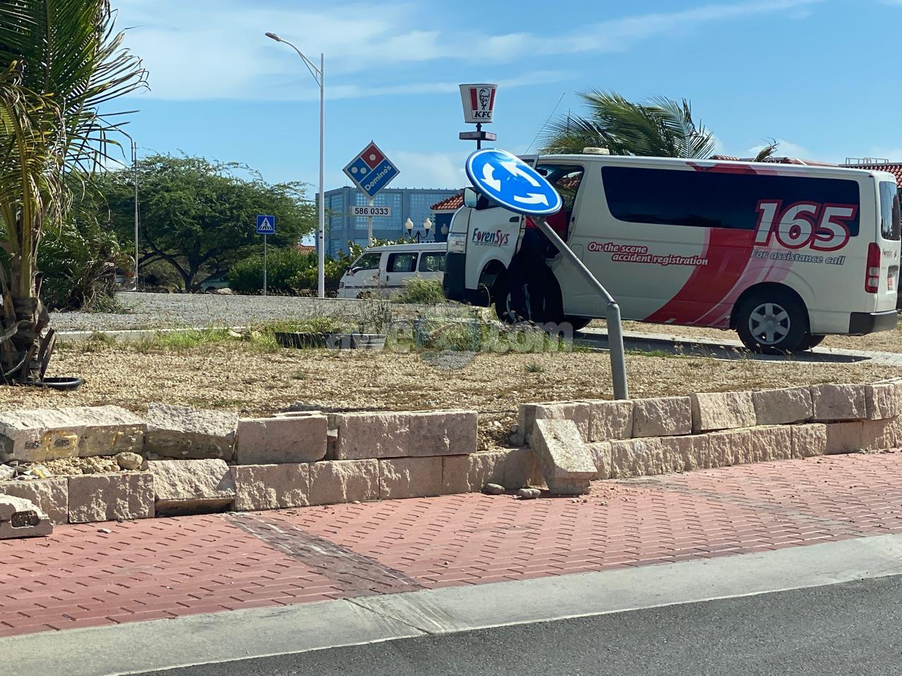 Diadomingo mainta a drenta informe di un accidente na e rotonde Palm Beach, mesora a dirigi un patruya na e sitio. na yegada di e patruya a bin compronde cu aki ta trata di un accidente unda aki e chauffeur no a logra para na tempo na e rotonde y a bay dal na un borchi y e muraya di e rotonde. Afortunadamente ningun hende a resulta herida.