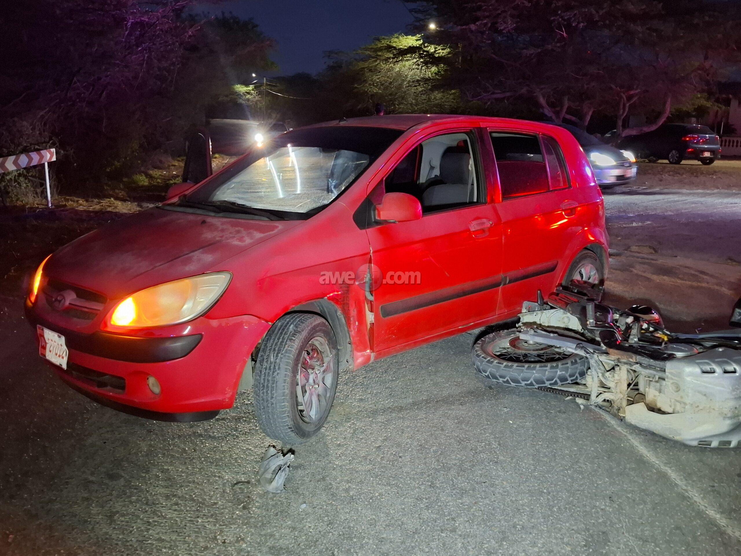 Dialuna anochi a drenta informe di un accidente cu hende herida na Papilon, mesora a dirigi un patruya na e sitio. Na yegada di e patruya a bin compronde cu aki ta trata di un accidente pa falta di preferencia unda e motociclista a resulta herida. Na yegada di e ambulans nan a atende e victima y a transporte pa hospital pa tratamento mas avansa debi na dolornan na su pecho.