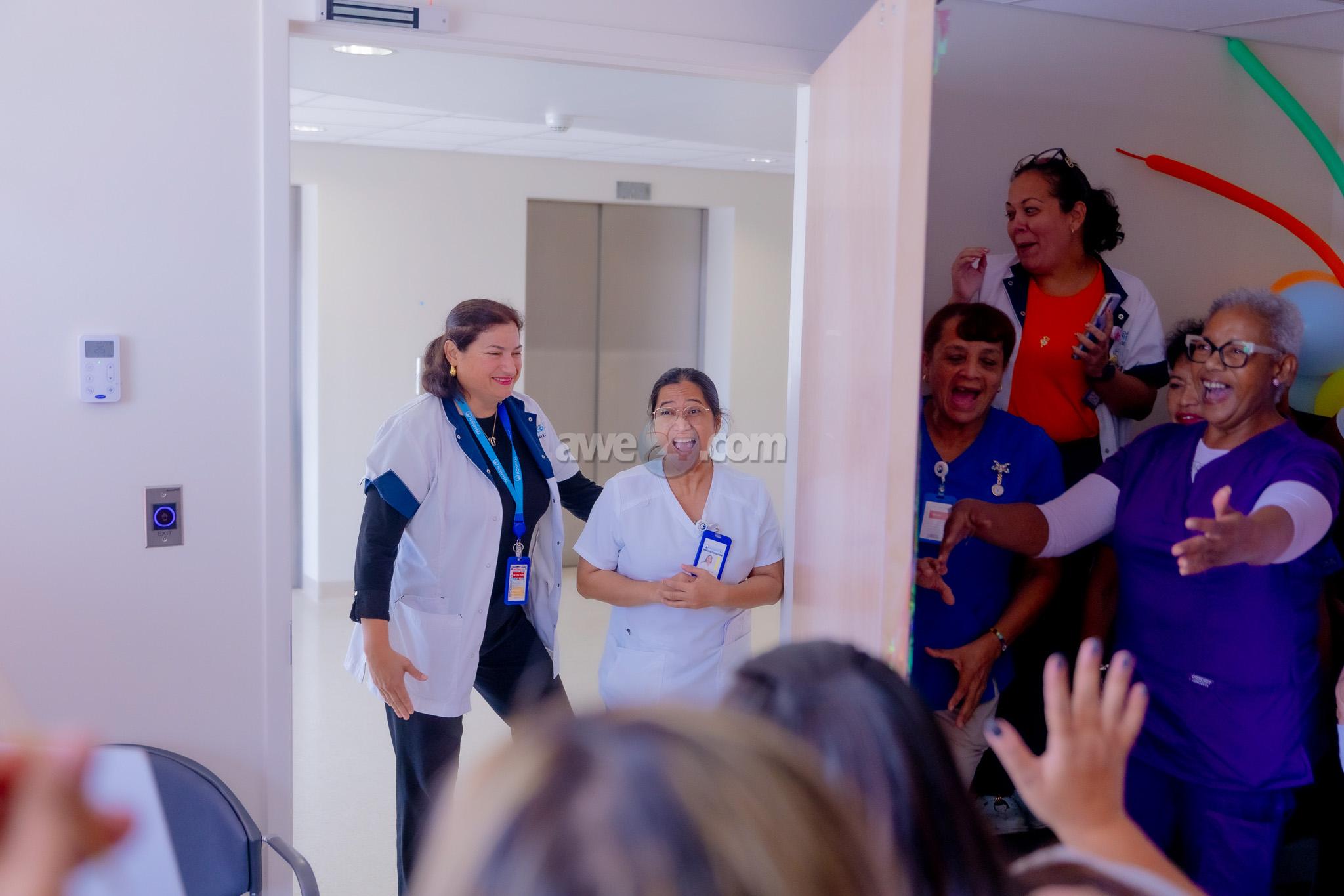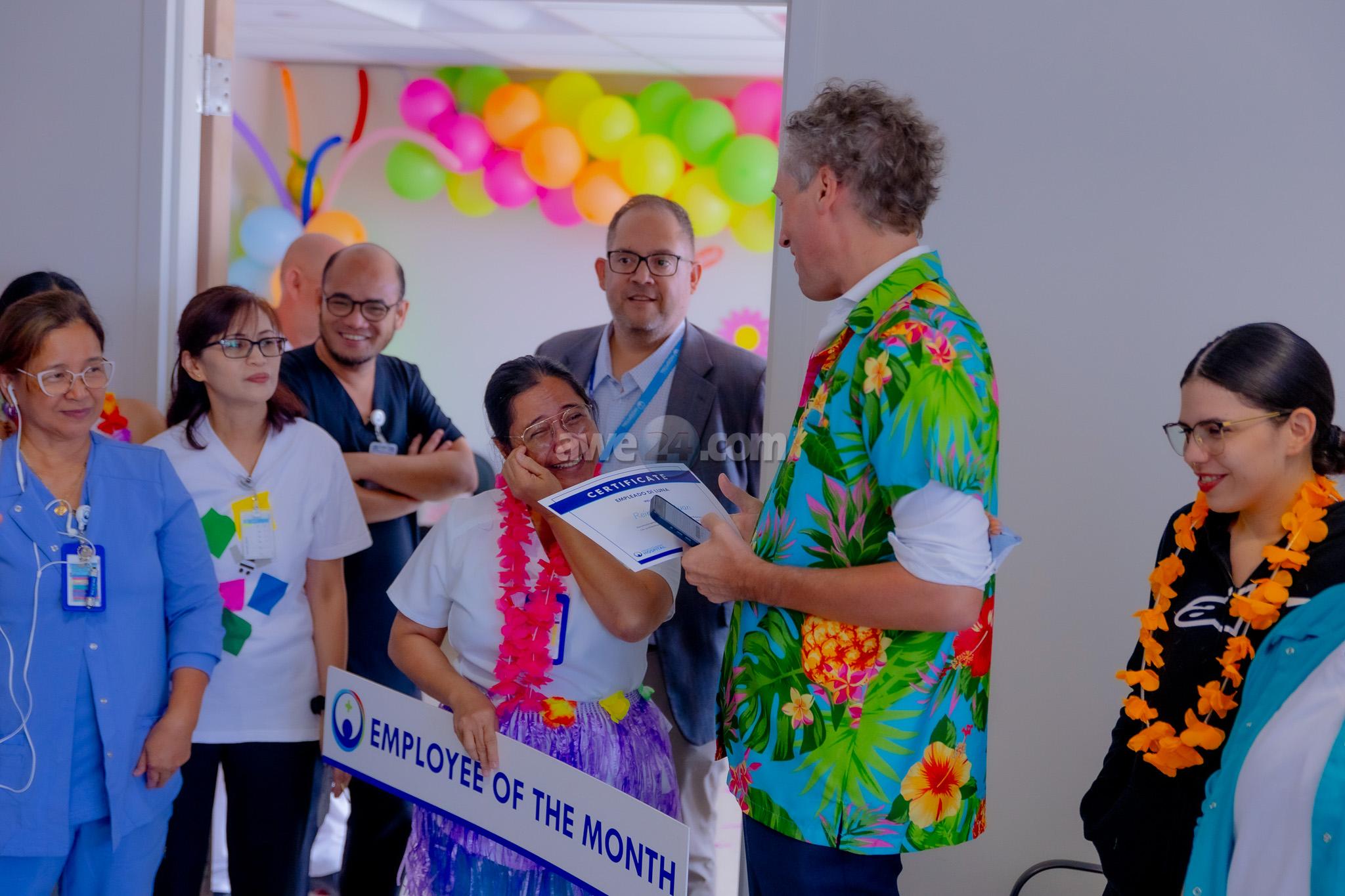 Enfermera Reina di departamento A4 tabata bezig ta regla algun cos pa su manager y djey nan dos a cana drenta e camber di reunion unda ela topa cu tur dos miembro di Hunta di Directiva, su famia y varios colega directo y indirecto yena cu animo den tema di Hawaii. Su cara ful sorprendi paso e no a sospecha nada. Un sorpresa masha grandi cu a lag’e emociona. Un momento sigur inolvidabel y merecidamente unda cu a pone Reina den ‘spotlight’ pa tur e trabou ehemplar cu e ta eherce na HOH.