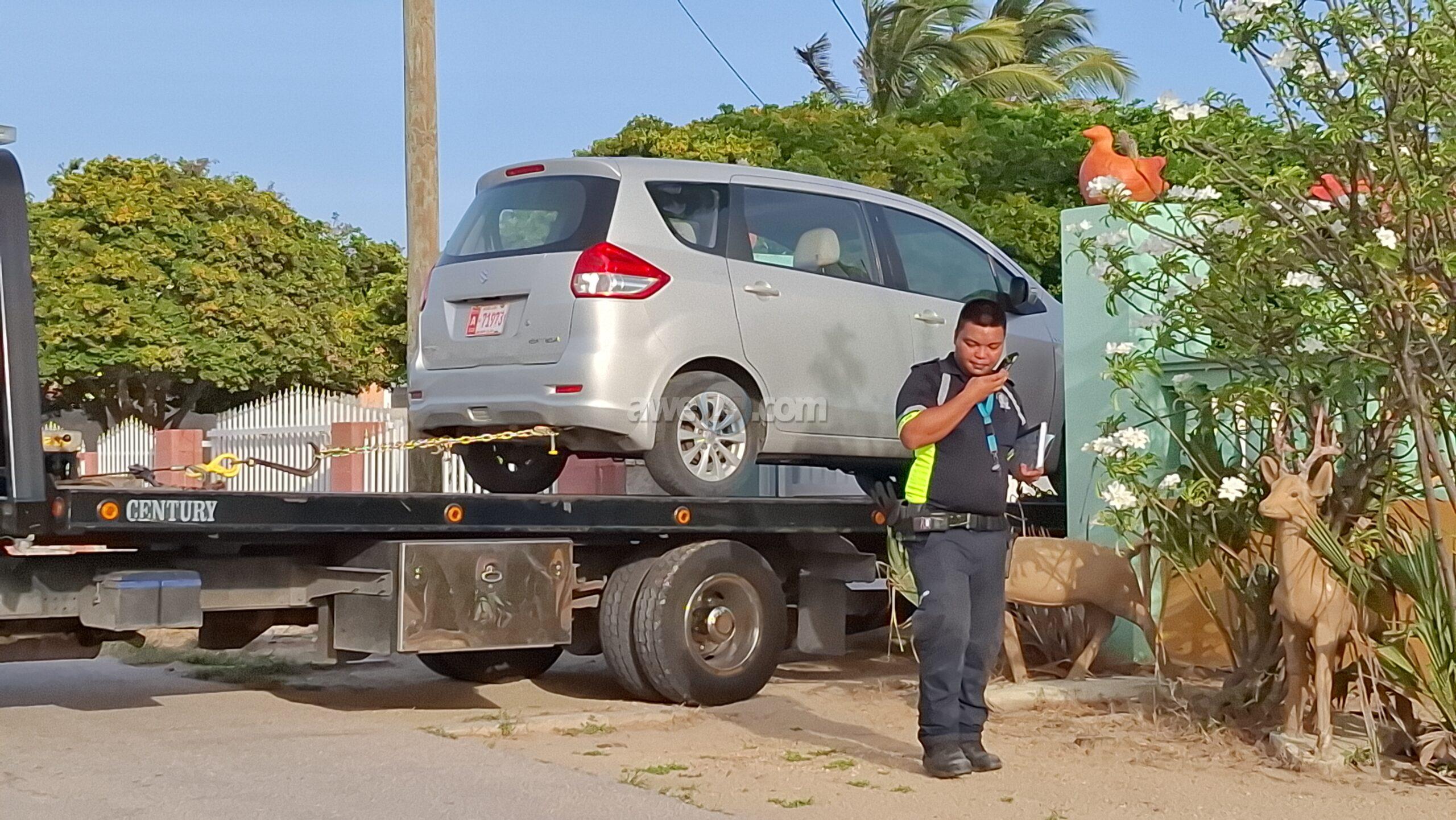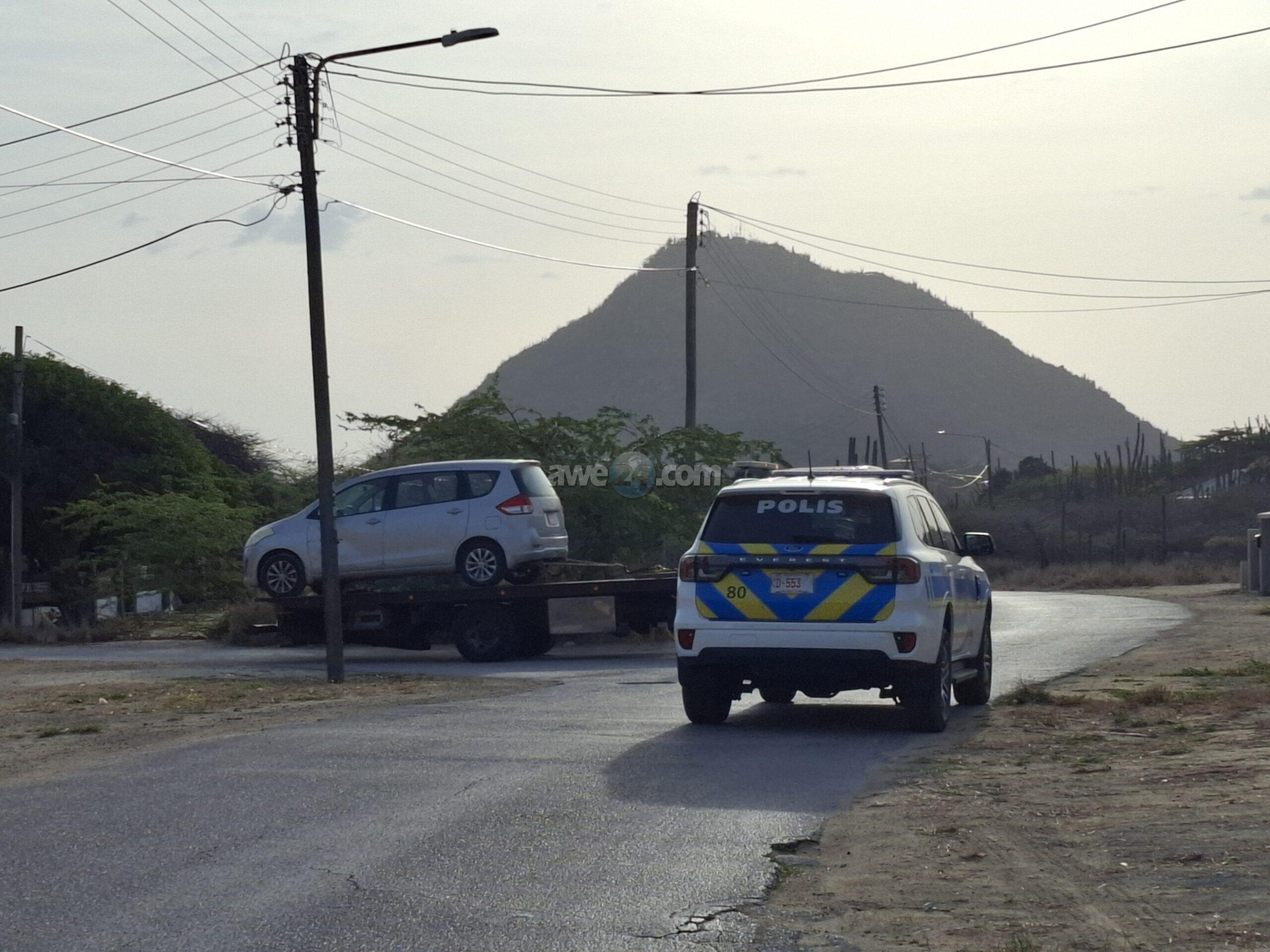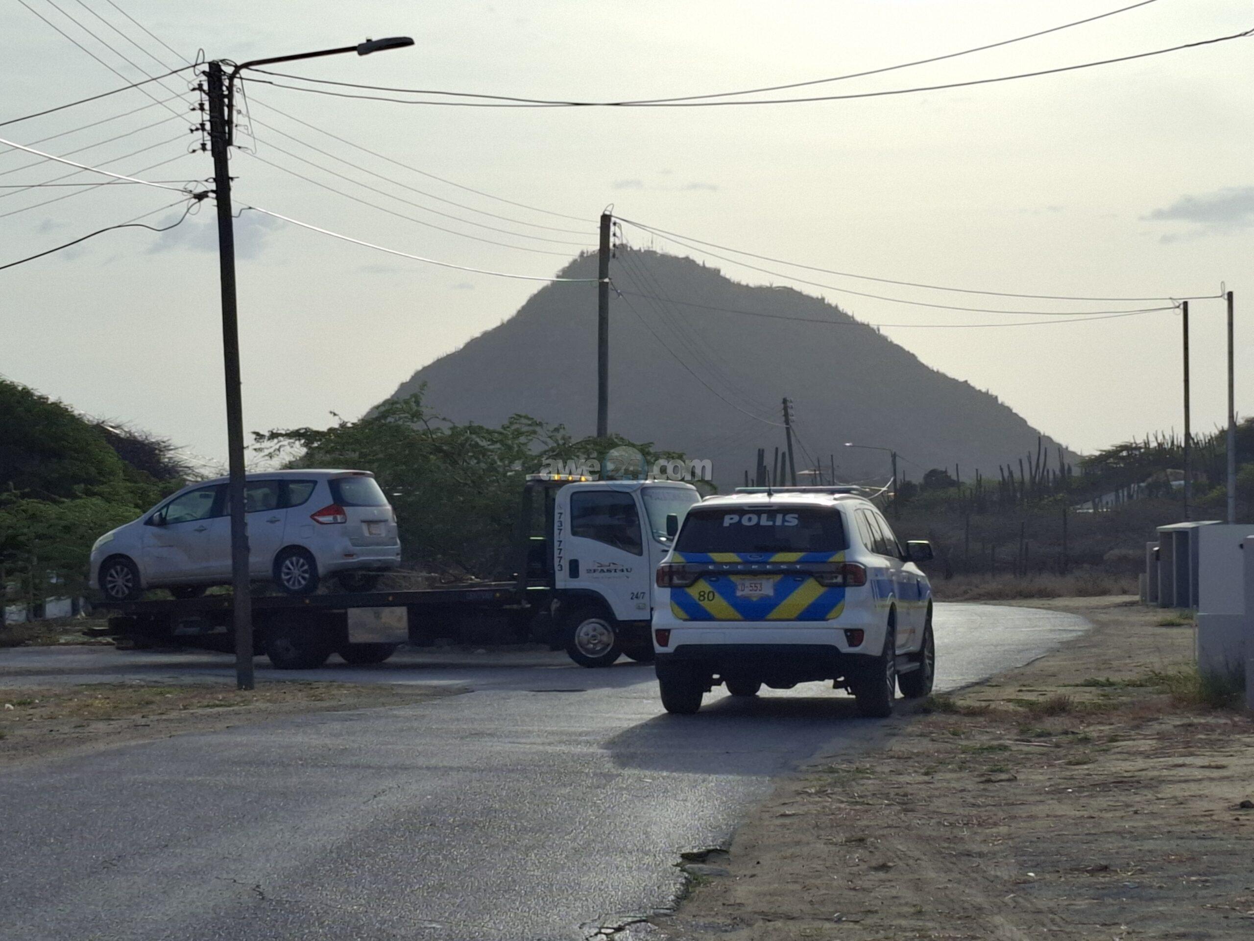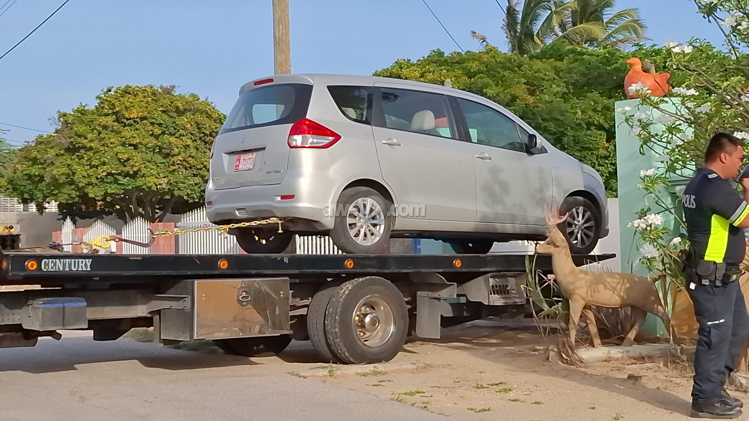 Diabierna atardi despues di e accidente na Macuarima e chauffeur cu a agredi e dama despues di e accidente a bandona e sitio y a bay sconde e auto patras di su cas, Polis a nota cu e auto ta scondi patras y a pita pa e chauffeur sali pero e no kier a sali. Un persona di edad a sali pafo y polis a bis’e cu si e chauffeur no sali e ta confisca e auto unda e tin’e scondi. Como cu no por a haci otro na final polis a laga takelwagen saca e auto y bay cu e auto warda di polis na Santa Cruz pa asina esun responsabel tras stuur para pa su actonan.
