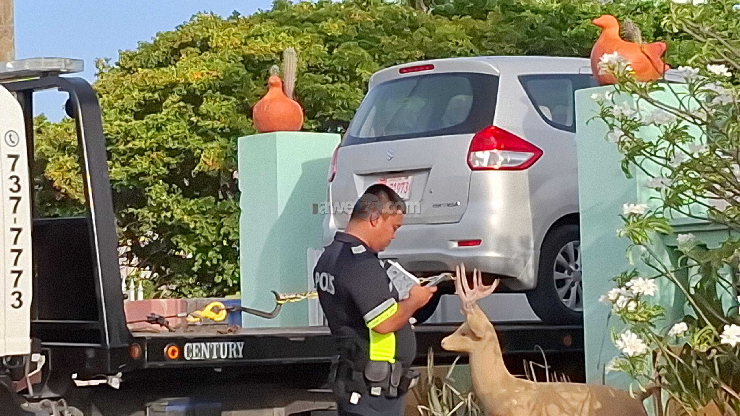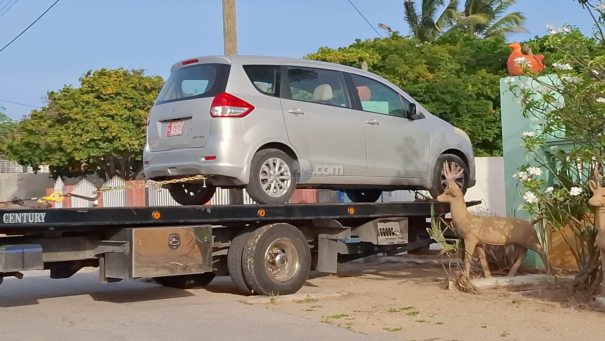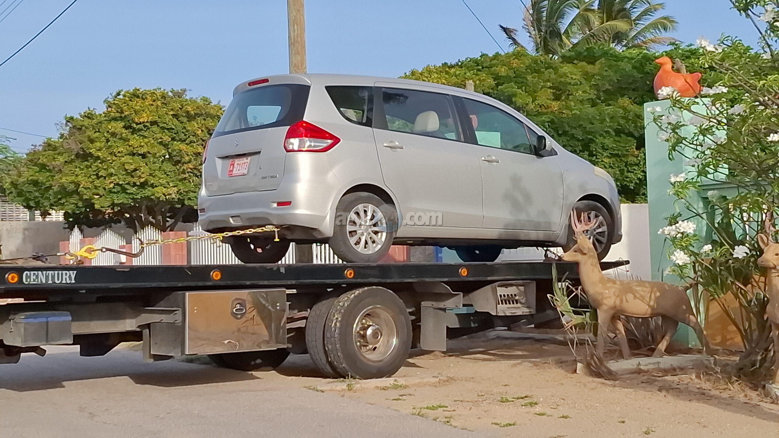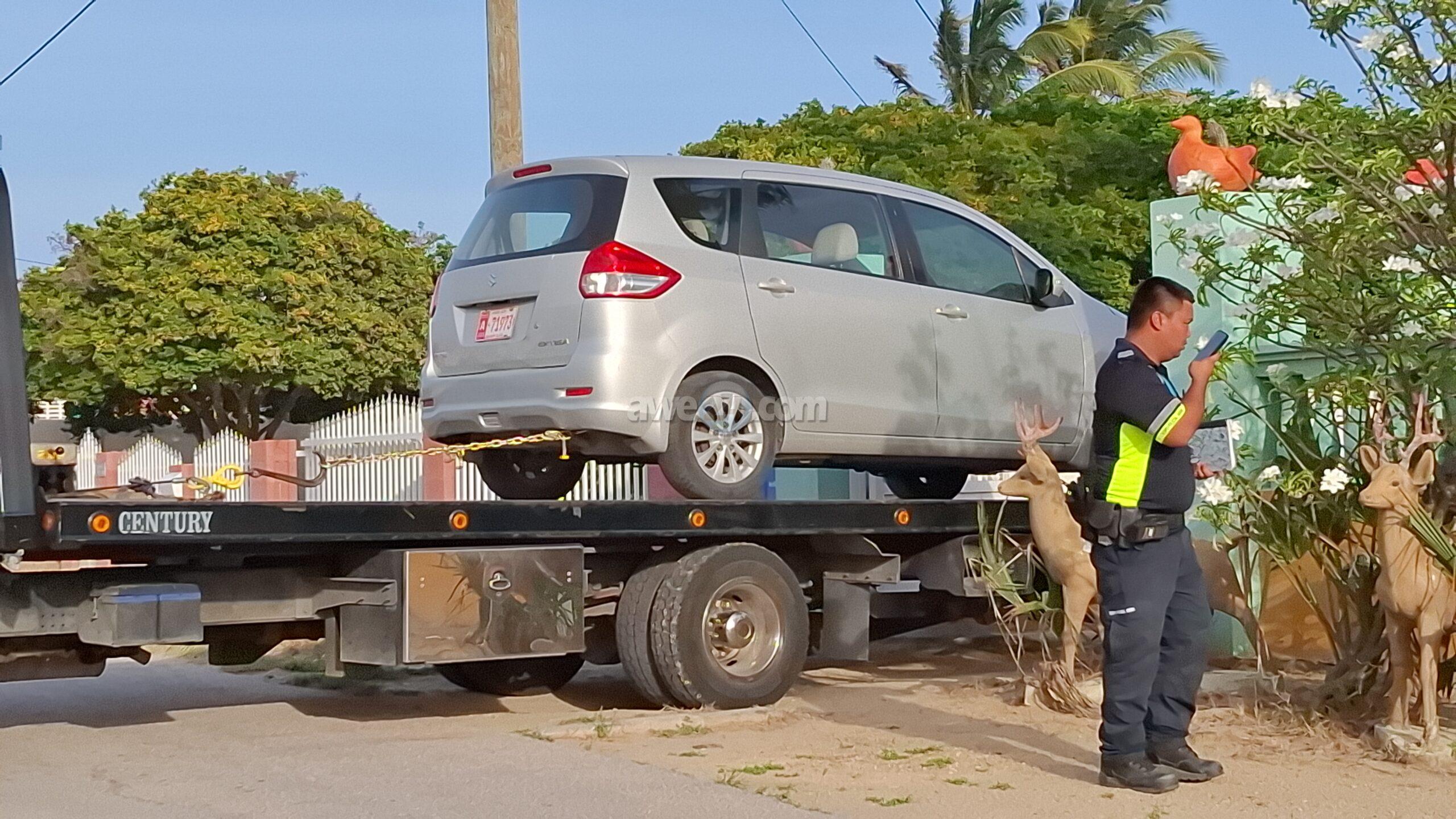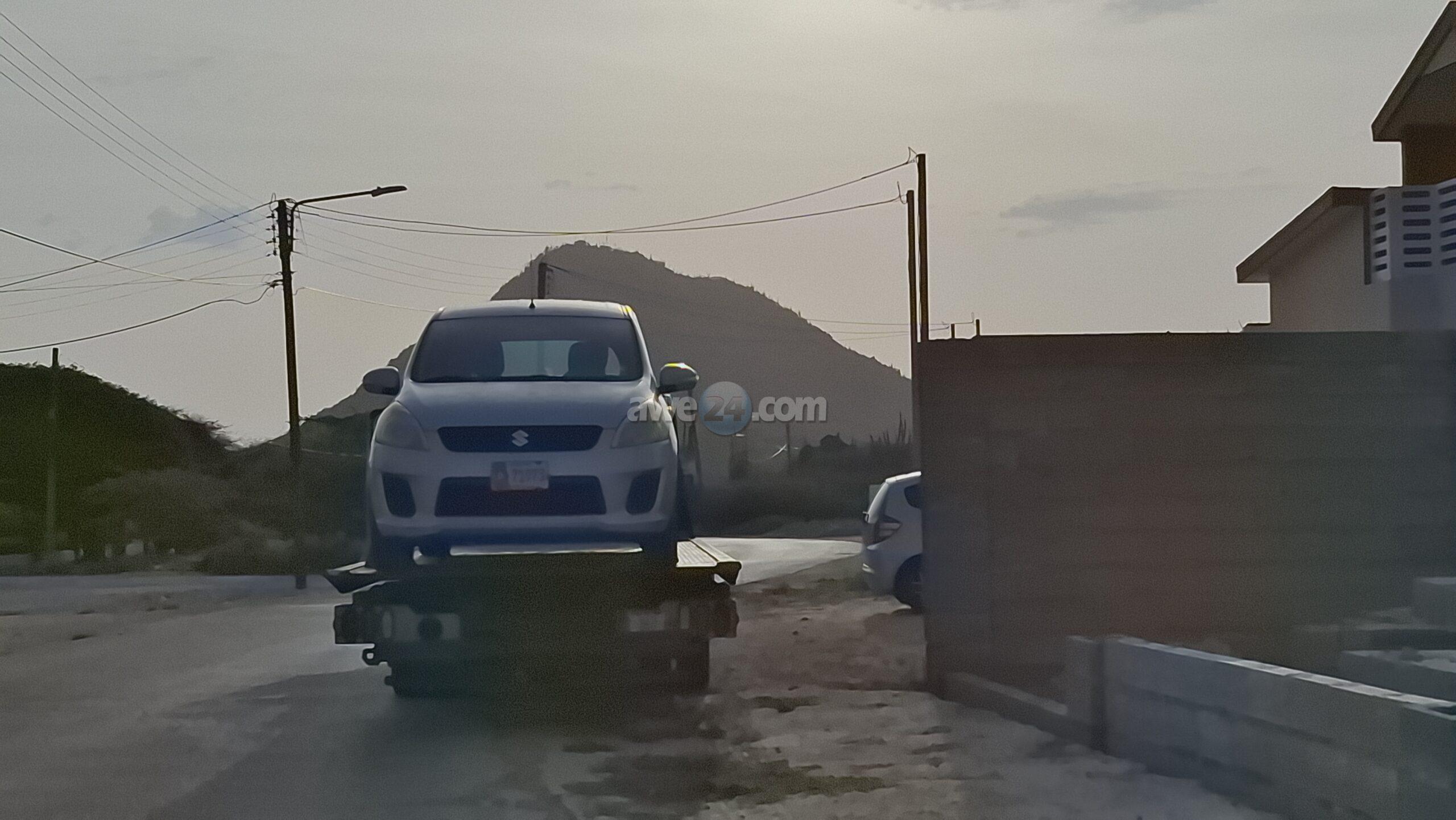 Diabierna atardi despues di e accidente na Macuarima e chauffeur cu a agredi e dama despues di e accidente a bandona e sitio y a bay sconde e auto patras di su cas, Polis a nota cu e auto ta scondi patras y a pita pa e chauffeur sali pero e no kier a sali. Un persona di edad a sali pafo y polis a bis’e cu si e chauffeur no sali e ta confisca e auto unda e tin’e scondi. Como cu no por a haci otro na final polis a laga takelwagen saca e auto y bay cu e auto warda di polis na Santa Cruz pa asina esun responsabel tras stuur para pa su actonan.