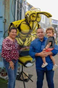 ORANJESTAD: Minister di Enseñansa y Deporte Endy Croes acompaña pa su kerida esposa Sra. Dilailah Croes y Parlamentario Hendrik Tevreden a acudi na apertura oficial di Cancha di Basketball di Centro di Bario y Deporte Dakota. Pa varios aña caba, e cancha di basketball no tabata den funcion. Diaranson ultimo, despues di 32 aña a inaugura Cancha di Basketball di Centro di Bario y Deporte Dakota den un bachi completamente nobo.