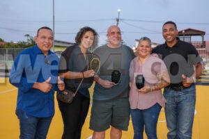 Minister Endy Croes a hiba palabra den ocasion special aki. Locual ta bunita di e proyecto aki ta cu varios persona y compania a contribui gratuitamente den e renobacion di e cancha di basketball. Ora bo ta traha den ekipo bo ta logra cosnan grandi. Minister Endy Croes a haci un peticion pa hunto nos cuid’e y mantene den bon condicion pa nos mucha- y hobennan di bario por sigui practica deporte. Durante e apertura, a reconoce tres (3) atleta di Dakota cu a desteca enormemente den nan tempo, esta Sra. Rishenella Richardson, Sra. Gwendoline Kock y Sr. Luis Tromp.