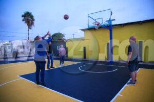 Minister Endy Croes ta gradici Gobierno di Aruba, Ministerio di Deporte, directiva di Centro di Bario y Dakota y nan presidente dinamico Sr. Carl Michael Bikker cu a contribui den e renobacion di e cancha di basketball. Ademas di esaki, e mandatario di Deporte ta gradici tur stakeholder cu a contribui boluntariamente den e renobacion di e cancha di basketball entre otro, Sr. Lito Abath. Sr. Gilmar Croes, Sr. Pancho Jansen di Jansen Construction y Sr. Alwin Boekhoudt di Quick Electrical Services N.V. cu a percura pa e luznan di cancha. Pa finalisa, Minister di Deporte Endy Croes ta felicita e bario di Dakota cu nan cancha di basketball competamente renoba y ta motiva e mucha- hobennan di bario pa practica deporte y keda activo.