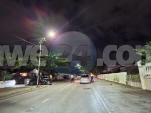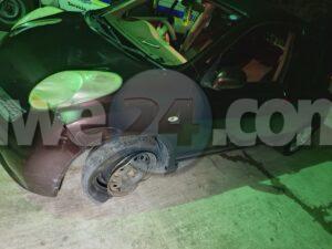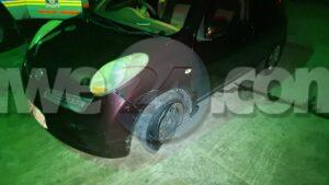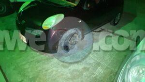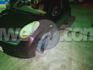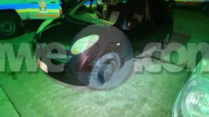 Diahuebs anochi a drenta informe di un accidente na Kamerlingh Onnesstraat, mesora a dirigi un patruya na e sitio. Na yegada di e patruya a bin compronde cu aki ta traya di un accidente hit & run unda e chauffeur di un March a dal wiel cu e wiel di un otro auto y despues a bandona e sitio pero no por a yega mucho leu debi na “flat tire” polis a sali bay busk’e y a topa cun’e. Polis a nota cu e chauffeur ta burachi, sin rijbewijs y cu droga den e auto. Polis a detene e chauffeur. Afortunadamente ningun hende a resulta herida.