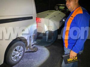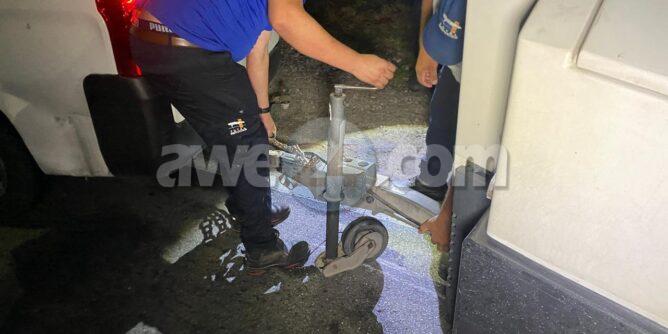 Diabierna madruga a drenta informe di un incidente riba e caminda di rotonde banda di Superfood pa rotonde Eagle Beach, mesora a dirigi un patruya na e sitio. Na yegada di e patruya a bin compronde cu e trailer tras di un van a los for di e bol pero e cadena a bons bin dal bek na e van. Afortunadamente ningun hende a resulta herida. Pero e van si a haya daño limita.