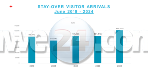 Te cu juni 2024, Aruba a ricibi un total di 737,691 bishitante “stayover”, esaki ta un crecemento di 19% compara te cu juni 2023, unda a ricibi 619,719 bishitante “stayover”. Ora ta yega na lider den mercado, te cu juni 2024, 81.6% di e bishitantenan ta di Norte America, 4.5% ta di Europa, 11.6% ta di Latino America, y 2.3% tawata procedente di otro partinan di mundo.