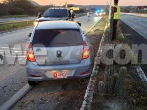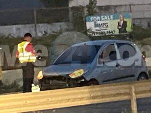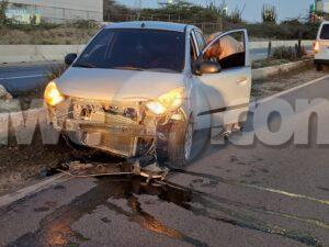 Diaranson madruga a drenta informe di un accidente na e “Green Corridor” dilanti di Wayaca Falls, mesora a drigi un patruya na e sitio, Na yegada di e patruya a bin compronde cu aki ta trata di un accidente unda e dama chauffeur di un Hyundai i10 bayendo pariba a perde control subi e median bay te na e otro banda di caminda. Afortunadamente ningun hende a resulta herida.