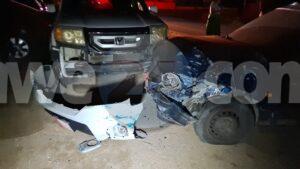 Diahuebs madruga a drenta informe di un accidente na Pavia, mesora a dirigi patruyanan na e sitio. na yegada di e patruya a bin compronde cu e auto a haya un desperfecto cu e brake riba caminda y no por a para y a perde control bay dal un taxi staciona y e impacto aki a manda e taxi dal un Honda staciona tambe. Aunke e impacto tabata fuerte cu basta daño pero asina mes afortunadamente ningun hende a resulta herida. Polis a test e chauffeur pero e no a surpasa e limite di alcohol.