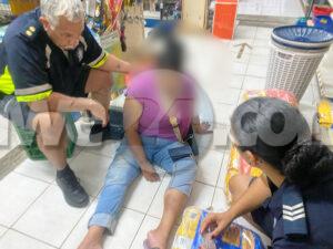 Diabierna mainta a drenta informe di cu tin un dama cu a cay y a keda benta abao den un supermercado na Madiki, mesora a dirigi tanto polis como ambulans na e sitio. Na yegada di e patruya a bin compronde cu e dama lo a bebe un poco dimas y tabata bisa cu su pia a lague na caya. Na yegada di e ambulans nan a atende y a laga e dama den man di polis pa percura pa e dama yega su cas.