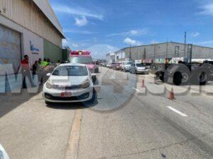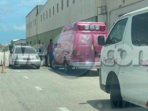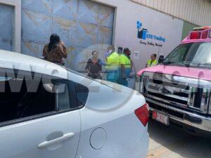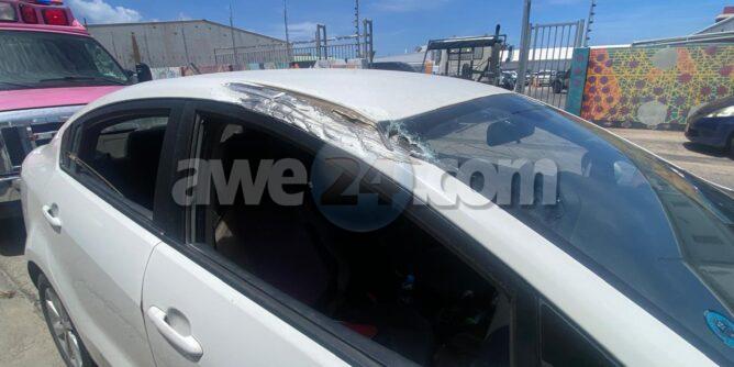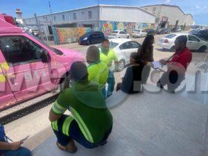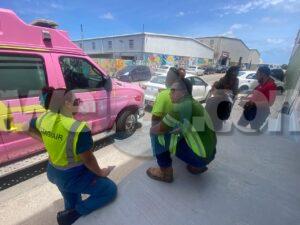 Diaranson mainta a drenta informe di un accidente cu hende herida na Bellstraat, mesora a dirigi tanto polis como ambulans na e sitio. Na yegada di e patruya a bin compronde cu aki ta trata di un un truck di carga baki sushi cu tabata den un cura cu e parti atras saliendo afo y un auto Kia Rio pasando a pasa raspa riba e parti patras riba su dak di auto. E dama chauffeur a spanta y a pidi pa ambulans despues di cu ambulans a bin controle y a conclui cu ta unicamente susto a dal e.