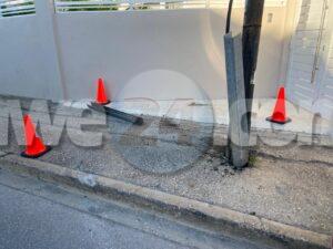 Diaranson atardi a drenta informe di un accidente cu hende herida na e crusada Rudolf Arendsstraat, mesora a dirigi tanto polis como ambulans na e sitio. Na yegada di e patruya a bin compronde cu aki ta traya di un accidente unda cu un otro auto a pone e chauffeur desvia perde control bay dal riba un palo di lus. Debi na e impacto net banda di e chauffeur a kibra e glas di bentana y a corta su man. Mientras e otro auto mes a sigui core bay. Na yegada si e ambulans nan mester a djies pone un pleister riba e herida. Debi na e impacto wayanan di coriente y cabletv a keda un poco abao colga.