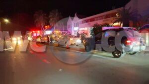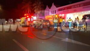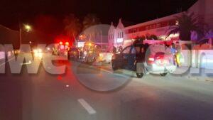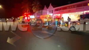Diaranson anochi polis bayendo pa un asistencia na Diamante a bin topa cu un accidente cu hende herida na Turibana, mesora a pidi presencia di ambulans pa 2 hende herida. Ta trata aki di un accidente cu 3 auto envolvi unda un dal tras di e otro y consecuentemente a bay dal tras di un otro. Tanto e chauffeur como e pasahero di e auto mas dilanti a resulta herida. Na yegada di e ambulans nan a atende un na e sitio mes mientras e otro mester a ser hiba pa hospital.