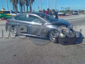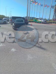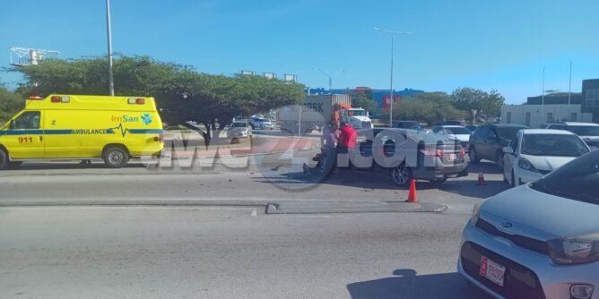 Diahuebs mainta a drenta informe di un accidente basta fuerte na e rotonde airport, mesora a dirigi tanto polis como ambulans na e sitio. Na yegada di e patruya a bin compronde cu e dama chauffeur di e Nissan Sentra a sali dilanti e Mitsubishi cual tabata bini lihe y nan a dal den otro. Debi na e fuerte impacto ambulans a presenta y a atende esnan envolvi na e sitio mes.