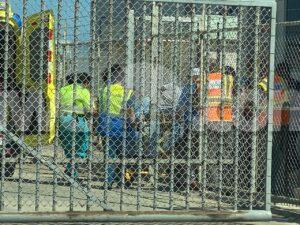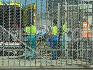 Diahuebs ainta a drenta informe di di cu un persona a cay for di trapi di loket di security na General Aviation, mesora a dirigi un ambulans na e sitio. Na yegada di e ambulans nan a atende y a transporte pa hospital.