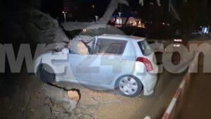 Diasabra anochi a drenta informe di cu un mata grandi a cay riba un auto banda di Riu Antillas, mesora a dirigi un patruya na e sitio. Na yegada di e patruya a bin nota cu un mata grandi a cay ribdena auto di un trahado trahando paden. Polis a busca e doño di auto pa avis’e mientras a pidi pa D.O.W. bin corta e mata.
