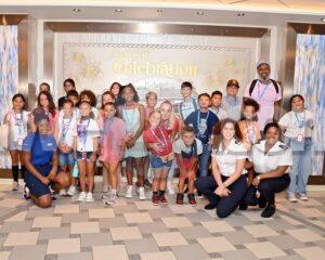 Un total di 60 mucha local a ricibi un experiencia inolvidabel abordo di Carnival Celebration, un crucero moderno y sofistica opera pa Carnival Cruise Lines. Un dia hopi special, mirando cu pa algun di e muchanan lo ta e prome biaha cu nan ta subi un barco crucero. Un evento cu a cuminsa cu palabranan di Sr. Marc Figaroa, CEO di Aruba Ports Authority (APA) deseando e muchanan un caluroso bon bini. Alabes, a duna palabranan di gratitud na Carnival Cruise Lines den nomber di Gobierno di Aruba, Aruba Tourism Authority (A.T.A.), y Aruba Ports Authority (APA). CEO di A.T.A. a uni su mes na evento y tambe a comparti pensamentonan cu e muchanan y ehecutivonan. Representantenan di Ministerio di Turismo y Salud Publico tambe tabata presente, mescos cu otro ehecutivonan di A.T.A. y APA.