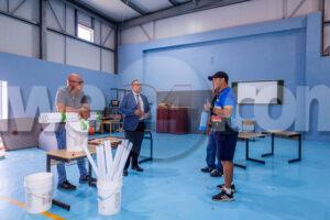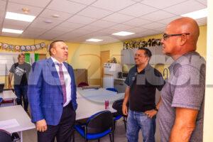 ORANJESTAD: Recientemente, Minister Endy Croes a acudi na St Aloysius School na Noord pa mira e ultimo avancenan di e proyecto di renobacion. E mandatario di Enseñansa a ricibi un rondleiding pa wak e ultimo desaroyonan di e proyecto di renobacion. Durante vakantie escolar, a instala e “smart board” nobo den 9 klas lokaal. Den e fase di innovacion y digitalisacion esaki sigur ta hunga un rol importante pa e hobennan cu ta custuma cu tecnologia, cual ta e “way to go” den futuro. “Nos ta hopi contento pa mira cu e proyecto di renobacion di e scol ta den su fase final y nos ta contento di a forma parti y aloca e fondonan necesario pa tanto pa e renobacion den su totalidad y un gymzaal nobo. Pocopoco ta agrega tur e rekisitonan cu falta pa asina nos por duna un miho calidad di enseñansa na e hobennan cu ta bishita e scol aki,” Minister Endy Croes a expresa.