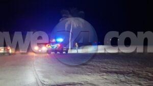 Diaranson madruga a drenta informe di cu tin un auto riba e santo blanco na final na e salida for di Eagle Beach, mesora a dirigi un patruya na e sitio. Na yegada di e patruya nan a bin encontra cu un Nissan March su so para riba e santo blanco y ningun hende cerca. Mirando un poco mas leu a mira 3 persona den lama y a acerca nan. A bin resulta cu a haya un turista latino cu 2 muhe e turista a afirma cu e ta cu e March eynan y no tabata sa cu ta prohibi para e auto riba e santo blanco. Polis a hala su atencion y a logra saca e March for di e santo blanco sin cu esaki a chock.