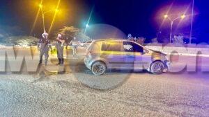 Un rato despues unidad di motorisa como tambe K-9 Unit ta topa cu un auto getz color shinishi na unda ta bay over pa stop e pa controla. E auto getz ta cuminsa core pa polis y na unda ta dal den dos auto y sigi bay direcion retonde Pos Chiquito. Unidad motorisa ta logra para e auto y na unda 4 persona masculino ta baha di e auto y hui pa polis.