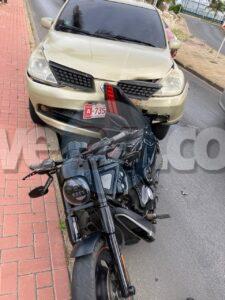 Diadomingo atardi a drenta informe di un accidente cu hende herida banda di Citgo L.G. Smith blvd., mesora a dirigi tanto polis como ambulans na e sitio. Na yegada di e patruya a bin compronde cu aki ta trata di un accidente unda e chauffeur di Nissan Tiida no a regula su velocidad ni a mantene distancia a bay dal tras di un Harley Davidson. Manera e motociclista a sinti impacto ela logra bula y evita un mal caida. Na yegada di e ambulans nan a atende e victima.