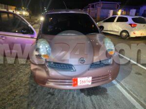 Diadomingo anochi a drenta informe di un accidente net na e rotonde banda di Acero, mesora a dirigi un patruya na e sitio. Na yegada di e patruya a bin compronde cu aki ta trata di un accidente unda cu un chauffeur bao influencia coriendo un Nissan March no a regula su velocidad ni a mantene distancia a bay dal tras di e Honda Fit su dilanti. Afortunadamente ningun hende a resulta herida. Polis kier a detene e chauffeur di e March pa core auto bao influencia y causa un accidente, pero un amigo a presenta y a laga e amigo bay cun’e y a duna e chauffeur un prohibicion di algun ora pa core auto.