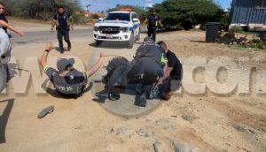 E agente policial a wordo transporta pa Ambulance pa mas tratamento avansa. E agente Policial di Noord ta den bon condicion cu fractura na pia. Altocomisario Arnhem y comisario Candelaria a bishite na Hospital. Un pronto recuperacion na nos agente policial di parti full bo famia blauw di Cuerpo Policial Aruba.