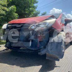 Diabierna atardi a drenta informe di un accidente na Monpos, mesora a dirigi un patruya na e sitio. Na yegada di e patruya a bin compronde cu aki ta trata di un accidente unda e chauffeur di un Nissan Sentra a bay hala pa un otro auto riba e caminda smal y a perde control baha caminda dal y ranca e palo di luz por completo. Aunke e impacto tabata fuerte afortunadamente ningun hende a resulta herida.