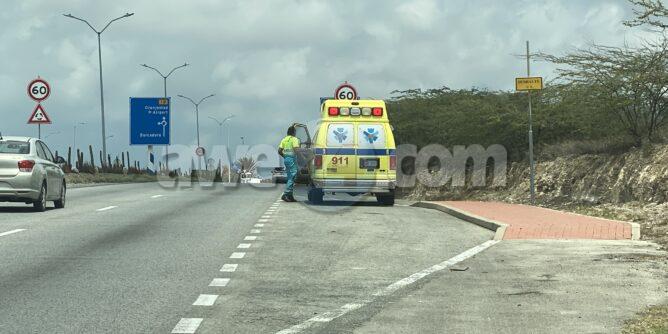 Diamars mainta durante bayendo pa un asistencia e patruya a bin topa cu un incidente unda un ciclista coriendo riba e “fietspad” pabao di rotonde Balashi lo a dal abao, mesora e oficial a baha pa wak kiko a pas’e. Na e momentonan ey tabata tin 2 oficial di guarda costa cu tabata atendiendo e. A bin resulta cu ta su so cu su so a dal abao y a pidi un ambulans mientras e mes a sigui pa su asistencia. Na yegada di e ambulans a pasa riba e ruta pero no a bin encontra cun’e y nan a sigui nan caminda.