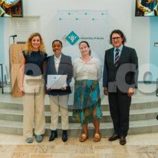 ORANJESTAD: Recientemente, Minister di Enseñansa y Deporte Endy Croes y Prome Minister Evelyn Wever- Croes a ricibi bishita di tres (3) maestra cu ta celebrando hunto un total di 132 aña di experencia WAW den enseñansa di Aruba, esta juffrouw Gregoritha (Ritha) Thode cu a cumpli 46 aña, juffrouw Elba Hirschfeld-Smith cu a cumpli 43 aña y juffrouw Stella Tromp Chan cu a cumpli 43 aña. Hunto cu ayudo di cabesante di Colegio Bon Bini juffrouw Sharissa, a sorpresa e maestranan na Bestuurskantoor. Durante e bishita, e maestranan a conta nan experencia durante tanto aña. Minister Endy Croes y Prome Minister Evelyn Wever- Croes a comparti un momento ameno cu e maestranan y a gradici nan pa nan amor, pasion y dedicacion durante varios aña den enseñansa di Aruba. E juffrouwnan a ricibi un bunita reconocemento di Gobierno di Aruba. E maestranan a indica cu nan ta hopi contento di por a experencia e innovacion den enseñansa, e cambio di les tradicional pa les digital. Ademas di esaki, a expresa cu nan ta contento cu despues di varios aña por a presencia e introduccion di Papiamento na scol y por a mira e cambio positivo cu esaki ta trece pa e alumnonan durante les. Pa finalisa, Minister Endy Croes ta felicita nan pa e bunita trabou cu nan ta desplega pa nos muchanan y ta gradici nan pa contribui grandemente den e desaroyo di enseñansa di Aruba den su totalidad.