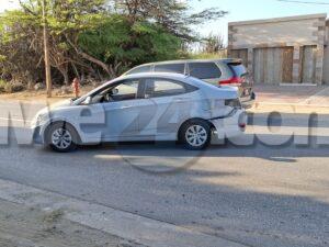 Diahuebs mainta a drenta informe di un accidente na e crusada banda di “Casi Nobo” den Avenida Milio Croes, mesora a dirigi un patruya na e sitio. Nayegada di e patruya a bin compronde cu aki ta trata di un accidente unda cu un chauffeur stranhero den Hyundai Accent no a ripara cu ela yega un crusada y a subi esaki net ora un pick-up Toyota a bin dal’e bir’e 90 grado. Afortunadamente ningun hende a resulta herida.