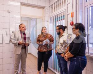 ORANJESTAD: Recientemente, Minister di Enseñansa y Deporte Endy Croes a haci un bishita oficial na Scol Practico pa Ofishi (SPO) Brazil. Director di SPO Brazil Sr. Marc Thiel y juffrouw Greta a ricibi e mandatario di Enseñansa cu un caluroso bonbini. Minister Endy Croes a haya un recorido na e scol, primordialmente den klas 4. Manera a splica na inicio di aña escolar, pa prome biaha den historia a inicia cu aña 4 y 5 na SPO. Antes e estudio na SPO tabata te cu aña 3. Cu e cambio aki, ta brinda e alumnonan cu ta hopi jong pa drenta mercado laboral, e oportunidad pa sigui studia y prepara nan mes mas miho. Sr. Thiel a indica cu tin tres (3) grupo a inicia e aña aki pa nivel di ABO 1: un grupo di Horeca, un grupo di Bouw y un grupo di Preparacion pa Labor. Sr. Thiel a sigui bisa cu nan ta cla pa inicia cu e programa di dos (2) aña cu ta certifica na nivel di ABO 1. Finalmente, Minister Endy Croes a gradici e cabesante Sr. Marc Thiel y ful e team di SPO Brazil cu ta contribui den e desaroyo di e alumnonan. Alabes, ta gradici e comision cu diseña e proyecto aki na bienestar di e alumnonan di SPO Brazil y SPO Santa Cruz. Hopi exito e aña escolar aki.