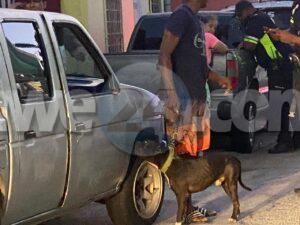 Diadomingo atardi a drenta informe di cu un dama a pasa laga su 2 pitbullnan cu un saco grandi di cuminda pa nan. Polis a purba di haya contacto cu e dama pero no a logra. Ta un ruman homber di e dama pra ela tende kiko su ruman muhe a haci a bay recoge e cachonan aki.