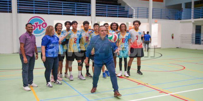 ORANJESTAD: Diamars anochi, Aruba Sport Unie (ASU) a inaugura e vloer nobo y ultramoderno di Centro Deportivo Libertador Betico Croes na Santa Cruz. Manera ta conoci, e vloer di e sporthal tabata den un condicion deplorabel. Durante pandemia e sporthal a wordo uza como centro di vacunacion y a acorda cu Gobierno di Aruba lo percura pa renobacion di e vloer. Pues, pa hopi tempo no por a uza e sporthal pa eventonan deportivo. Den luna di juli, e container cu tur material a yega Aruba, unda cu e trabounan di renobacion a inicia y recien keda finalisa.