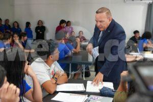 Rector di Mon Plaisir College Havo Sra. Richelle Noël a gradici Minister Endy Croes pa bishita e scol y pa invita e alumnonan pa e sesion importante aki. Sra. Noël a enfatisa cu buscamento di camber na Hulanda ta un problema serio y e ta contento cu Minister Endy Croes ta traha tempo pa atende cu e problematica aki. Por ultimo, Minister Endy Croes a gradici Sra. Noël, docente- y alumnonan pa e caluroso recepcion. “Nos ta warda e studiantenan mas un (1) mayor dia 26 di september proximo pa 6 ‘or di atardi na IMAX Gloria”, Minister Endy Croes a finalisa.