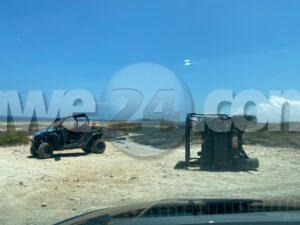 Diamars merdia a drenta informe di un accidente cu hende herida na e subida di lighthouse, mesora a dirigi tanto polis como ambulans na e sitio Na yegada di e patruya a bin compronde cu un pareha turista lo a bolter cu un UTV y e pareha victima tabata ser transporta den un otro UTV y ora a topa e ambulans nan a atuma e victimanan over y a transporta nan pa hospital.