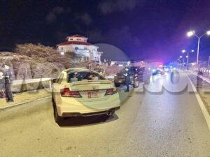 Diasabra anochi a drenta informe di un accidente riba Green Corridor banda di Hyatt Place. Mesora a dirigi un patruya pa e sitio. Na yegada di e patruya a bin compronde cu un auto blanco lo a pasa duro perde control dal den dos auto. Na yegada di e ambuans a controla e personanan pero no tabata necesario pa bai hospital. Polis a tuma datos di e accidente aki.