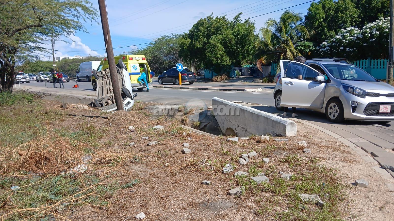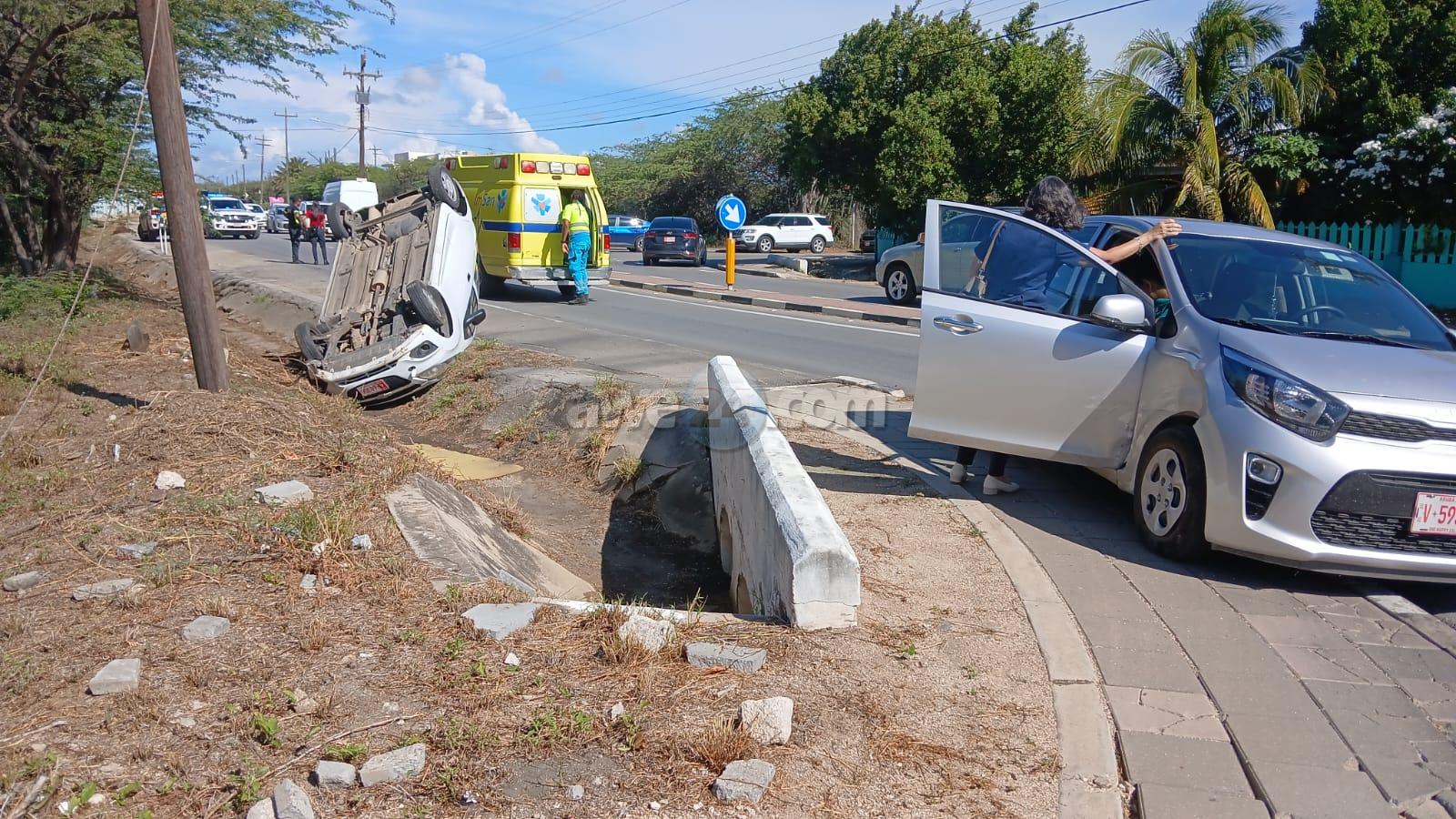 Dialuna atardi a drenta informe di un accidente unda un auto a bolter cu hende herida na Pos Abao. Mesora a dirigi tanto polis como ambulans na e sitio. Na yegada di e patruya a bin compronde cu un KIA Picanto shinishi lo a sali dilanti un Chevrolet Spark blanco cu tabata biniendo di direccion Hato. E Auto blanco lo a purba para pero no a logra y a dal den auto shinishi. E impacto tabata fuerte y a pone cu e auto blanco a bolter y cay den e greppel na banda. Departamento di brandweer tambe tabata na e sitio pa asistencia. Na yegada di e ambulans nan a atende cu e victima y a transporte pa hospital. Polis a tuma datos di a accidente aki.