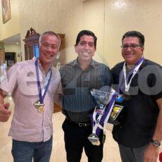 ORANJESTAD: Recientemente, den un esfera ameno Minister Endy Croes a ricibi e landadonan di Giants Aquatics cu a representa Aruba den luna di augustus na Pan Am Aquatics Championship cu a tuma luga na Puerto Rico. Cada dos (2) aña, Pan Am Aquatics ta organisa un Campeonato di Age Groups na un pais Pan Americano. Pais Aruba a ricibi e invitacion y Giants Aquatics a tuma e reto y a participa cu 16 atleta. Durante un periodo di shete (7) siman, e landadonan a train dos (2) biaha pa dia bou guia di nan head coach Jordy Groters, asisti pa coach Jireh Larmonie y Jonathan Ponson. Un total di 24 ekipo sea tabata seleccion of team di natacion a participa. Giants Aquatics a conkista 9 medaya di oro, 5 plata y 8 brons, kedando asina na di tres (3) luga overall den 24 team. Den nomber di Gabinete Wever – Croes II, Minister Endy Croes a otorga e hobennan un medaya di 4D, cual ta para pa disciplina, deseo, dedicacion y determinacion. Por ultimo, Minister Endy Croes ta gradici e mayor- y coachnan cu ta sostene e hobennan den nan disciplina di natacion. “Di curason pabien y danki pa pone Aruba su nomber briya riba e plataforma internacional”, Minister Endy Croes a finalisa.