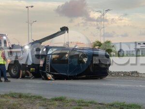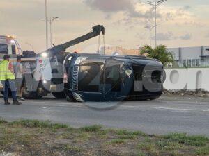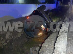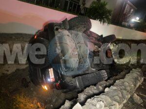 Diadomingo madruga a drenta informe di un accidente cu hende herida banda di rotonde Sasaki, mesora a dirigi tanto polis como ambulans na e sitio. Na yegada di e patruya a bin compronde cu aki ta trata di un accidente unda cu e chauffeur di un Toyota Prado saliendo for di e rotonde a bay banda robes di caminda dal un Hyundai Accent di direccion contrario den banda sigui bay na man robes bay cay den e greppel. Debi na e impacto y caida den e greppel e chauffeur a resulta herida. Na yegada di e ambulans nan a atende e chauffeur y a transporte pa hospital. Un dama den e Accent tambe tabata keha di dolor di nek y a ser atendi pa e personal di ambulans na e sitio mes.