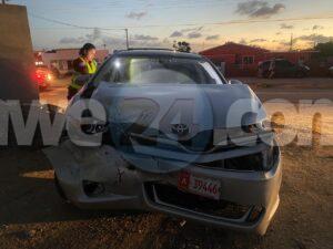 Diasabra atardi a drenta informe di un accidente unda un auto no por a para pa a dal frontal pero e chauffeur a kita hala pa banda robez y a bay dal frontal riba e otro auto. Debi na e impacto ambos chauffeur a resulta herida. Ambulans a presenta y a atende e victimanan.