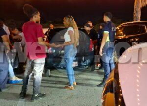 Diadomingo madruga polisnan atento riba caya a para un auto cu hobennan aden aki a bin haya un dama cu un machete chikito den e tas di e dama y un arma a ser haya na un mucha homber. Polis a detene ambos y a bay warda di polis na Shaba cu nan.
