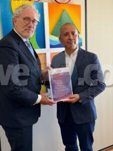 Oranjestad – Diabierna dia 18 di october 2024 Vice-Presidente di Raad van State van het Koninkrijk sr. mr. Thom de Graaf, a entrega nan conseho den cuadro di e 70 aña di existencia di Statuut di Reino Hulandes na Presidente di Raad van Advies sr. David Kock.