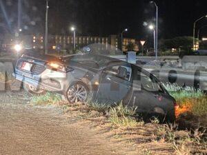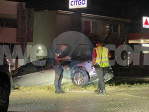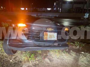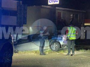 Diasabra madruga a drenta informe di cu un auto lo a cay den e greppel banda di Eagle Bowling, mesora a dirigi un patruya na e sitio. Na yegada di e patruya a bin haya e V2834 Chevrolet Cavalier shinishi maneha pa un dama sin rijbewijs cu lo a bay reverse y a cay den e greppel. Polis a duna e dama un boet y takelwagen mester a bin saca e auto for di e greppel.