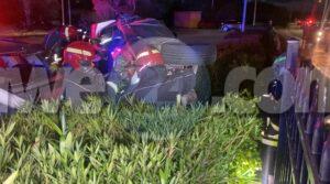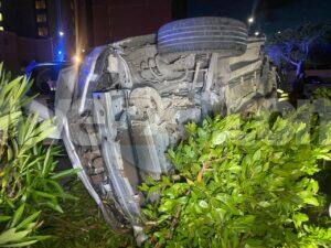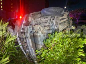 Diadomingo atardi laat a drenta informe di un accidente cu hende herida unda un auto a perde control y a bay cay y causa daño na otro 4 autonan staciona den cura di Ritz Carlton, mesora a dirigi tanto polis, ambulans como tambe e equipo di rescate di bombero na e sitio. Na yegada di e patruya a bin compronde cu aki ta trata di e Mitsubishi Galant A67760 cual a perde control y a bay dal e cura di Ritz Carlton kibra y a destrui 4 otro autonan mas. Entre nan un Hyundai Accent A50753, un MG V5674, Kia V166 y tambe e Jeep A68239. Tur e autonan aki a ricibi daño. Den e auto mes tabata tin e dama chauffeur hunto cu 2 mucha mas. Na yegada di e ambulansnan nan a atende e victimanan mientras bombero a corta e wayanan di bateria pa asina evita e auto pega na candela.