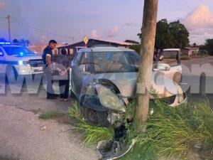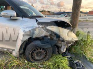 Diaranzon mainta a drenta informe di cu un auto cu a caba di dal un palo di lus a sigui core y a dal otro palo di lus na Tanki Flip, mesora a dirigi un patruya na e sitio. Na yegada di e patruya e dama no por a sigui core mas y a haye obliga di stop. Eynan mesora polis a ripara cu e no ta den condicion pa sigui core auto y a detene. E vehiculo di transporte a bin busk’e y a bay cun’e.