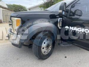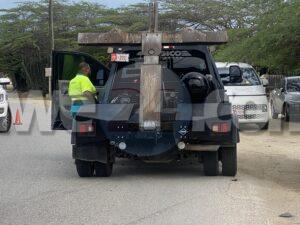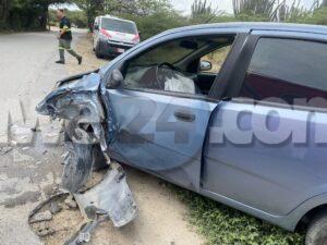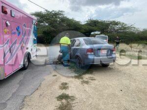 Dialuna mainta a drenta informe di un accidente cu hende herida na Sero Patrishi, mesora a dirigi tamto polis como ambulans na e sitio. Na yegada di e patruya a bin compronde cu aki ta trata di un accidente unda e chauffeur di e takelwagen a tuma e bocht mucho paden y e auto contrario a bin dal den banda di e takelwagen. Den e impacto aki e chauffeur a manera cunsa bati bati y a bay off un rato. Despues ela bin bij y a bay sinta na un banki. Na yegada di e ambulans nan a atende e victima y a transporte pa hospital.