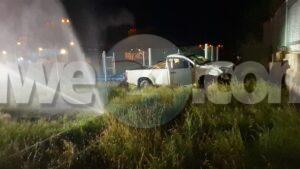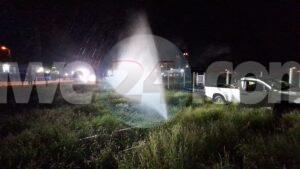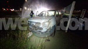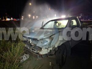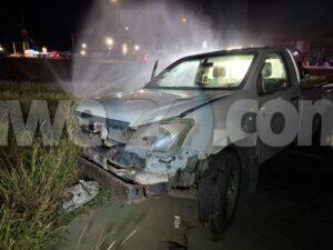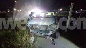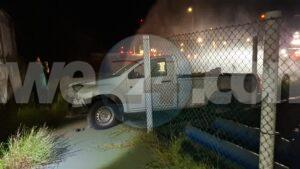 Diasabra anochi a drenta informe di un accidente na W.E.B. na Balashi, mesora a dirigi un patruya na e sitio. Na yegada di e patruya a bin compronde cu e chauffuer burachi den un pick-up tabata baha caminda bay banda robes despues bay banda drechi dal borchi trafico sigui bay kibra tubo di awa. Polis a detene e chauffeur burachi.