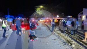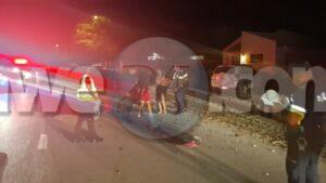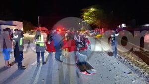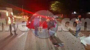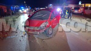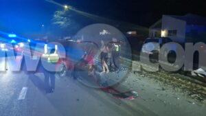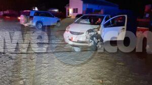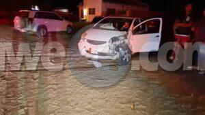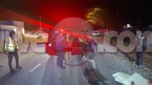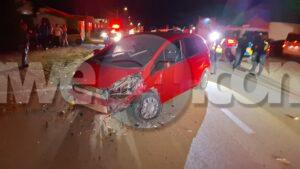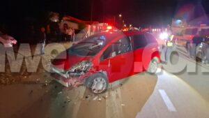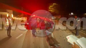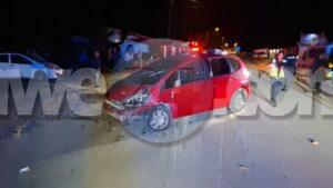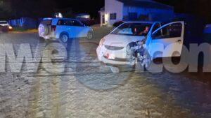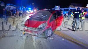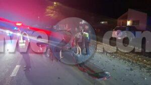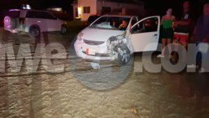 Diadomingo anochi a drenta informe di un accidente frontal na Santa Helenastraat, mesora a dirigi un patruya na e sitio. Na yegada di e patruya a bin compronde cu un dama chauffeur burachi a hala bay na banda robes y a bay dal frontal riba un otro auto. E pasahero tambe a ser deteni pa a stroba trabao di polis.